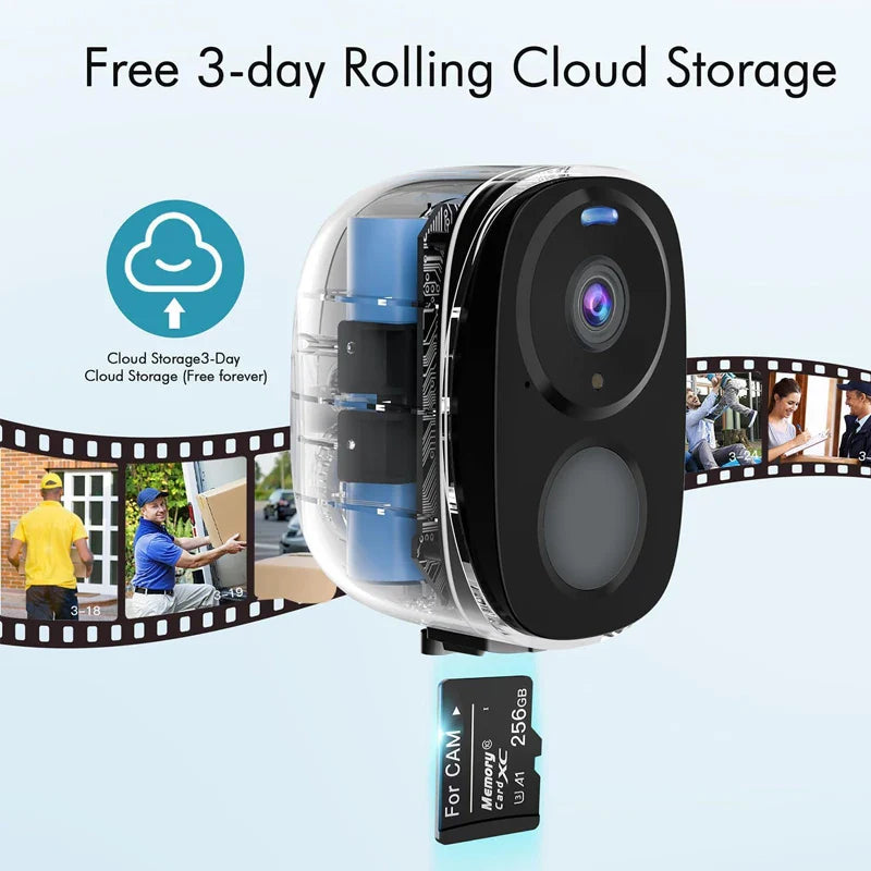La robustesse est au cœur de cette caméra de sécurité. Avec sa certification IP66, elle est entièrement étanche et résistante aux conditions météorologiques extrêmes. La conception en plastique durable garantit une longue durée de vie, tandis que la batterie rechargeable intégrée de 5200mAh assure une autonomie prolongée, éliminant le besoin de rechargements fréquents.